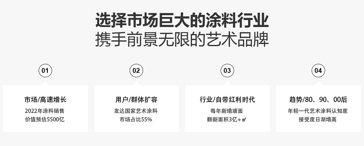 为了能让所有的加盟商都能获得成功,我们将为每一位有意加盟经营诺瓦帕妮艺术涂料的经销商提出具体的要求,只要您具备了我们的条件,您将可以成为我们的战略合作伙伴,我们将为您提供一个创造财富的广阔平台。